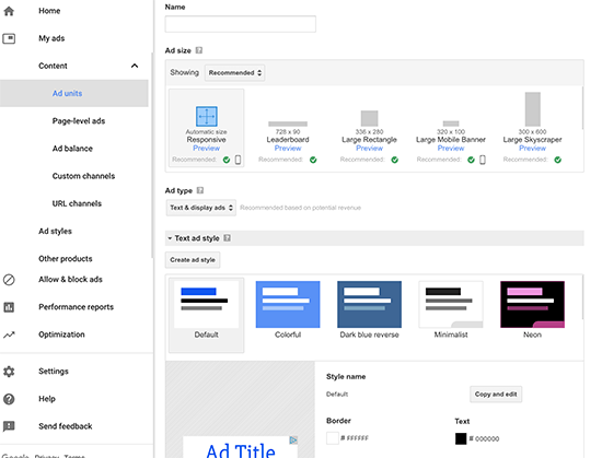 Ad style allows you to regulate the display of your text-based ad units. We recommend using your site’s color scheme for the best results.
